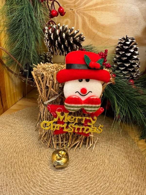 Muñeco de nieve con cartel de merry christmas de pañolenci