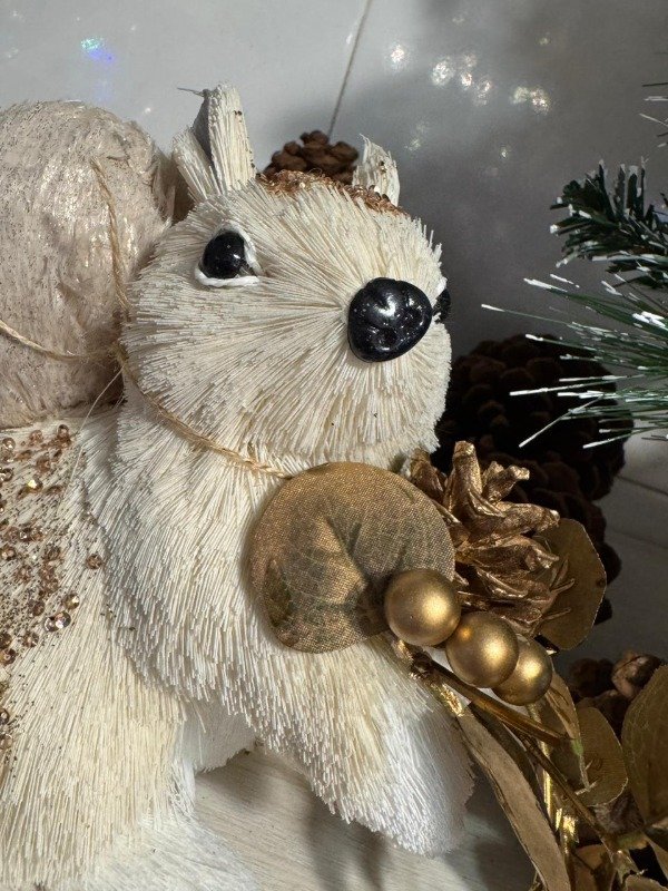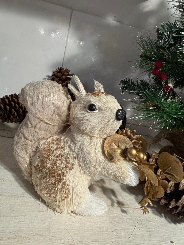 Material: paja natural, plástico, alambre, tela, terciopelo, lana, ojos artificiales.