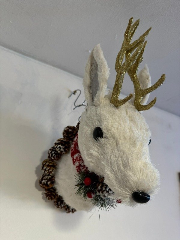 Material: paja natural, plástico, alambre, tela, terciopelo, lana, ojos artificiales.