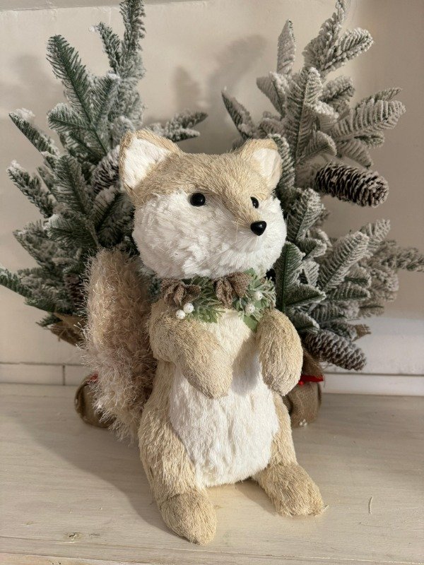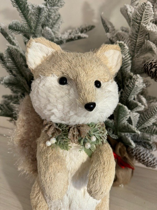 Material: paja natural, plástico, alambre, tela, terciopelo, lana, ojos artificiales.