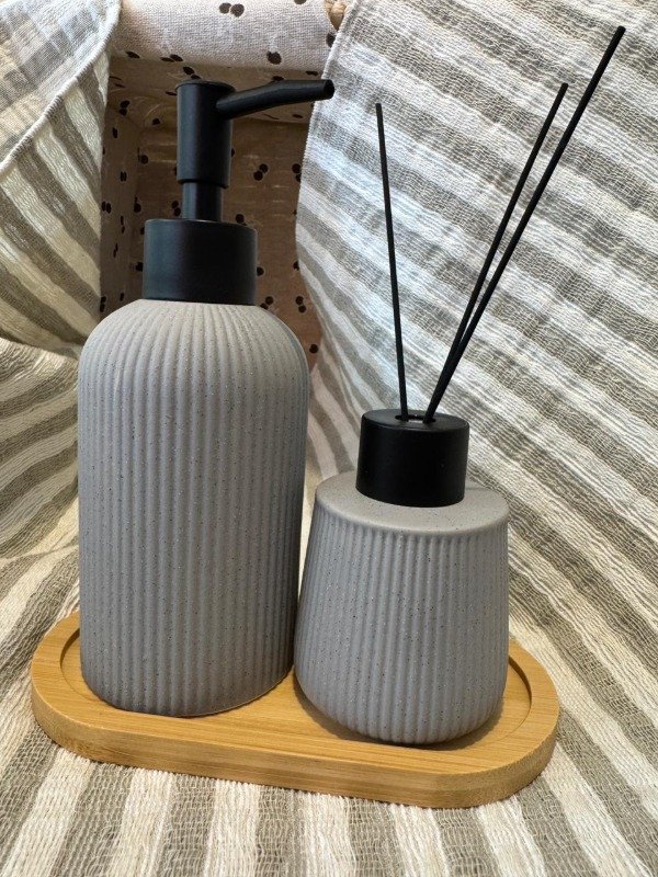 Set dispenser+difusor gris rayas (Efectivo: 35.920)