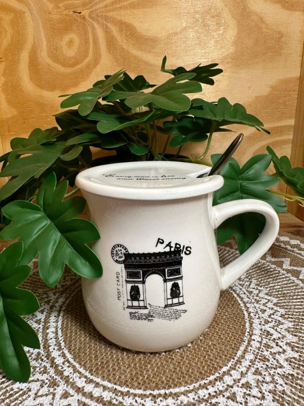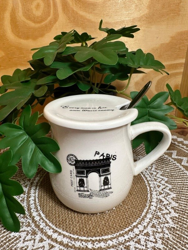 Taza con tapa y cuchara
