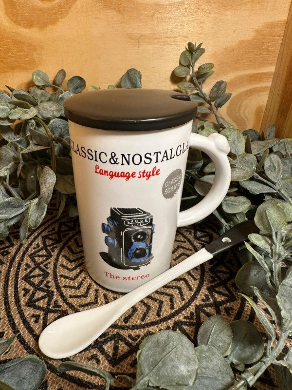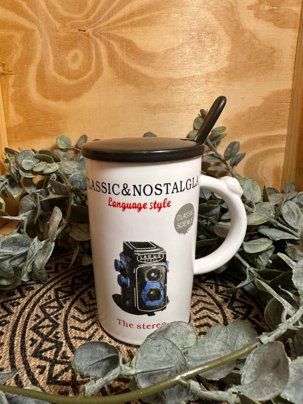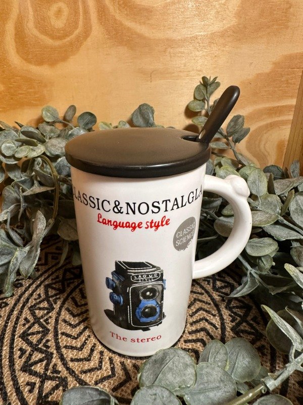 Taza con tapa y cuchara