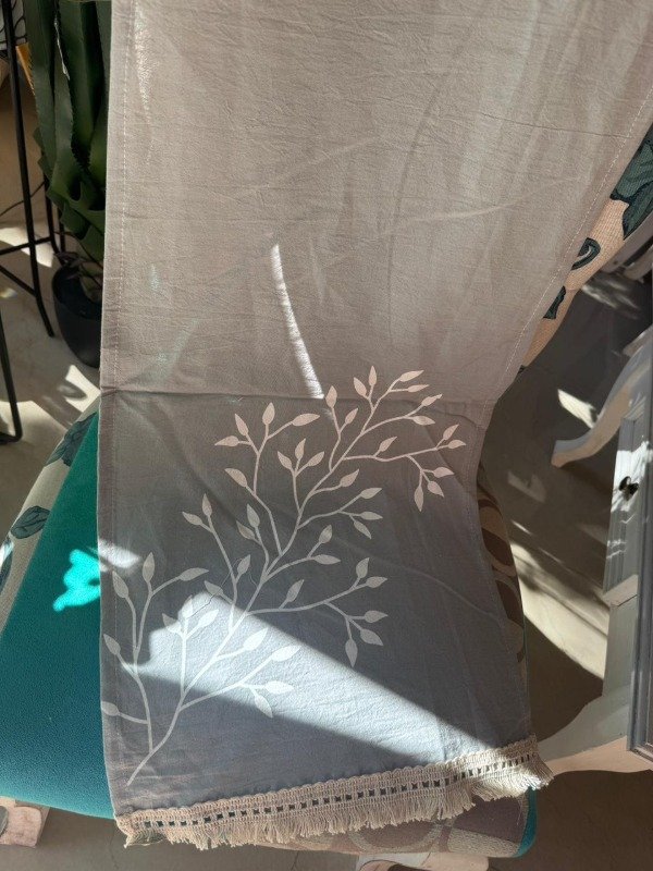 Camino de mesa gris con hojitas