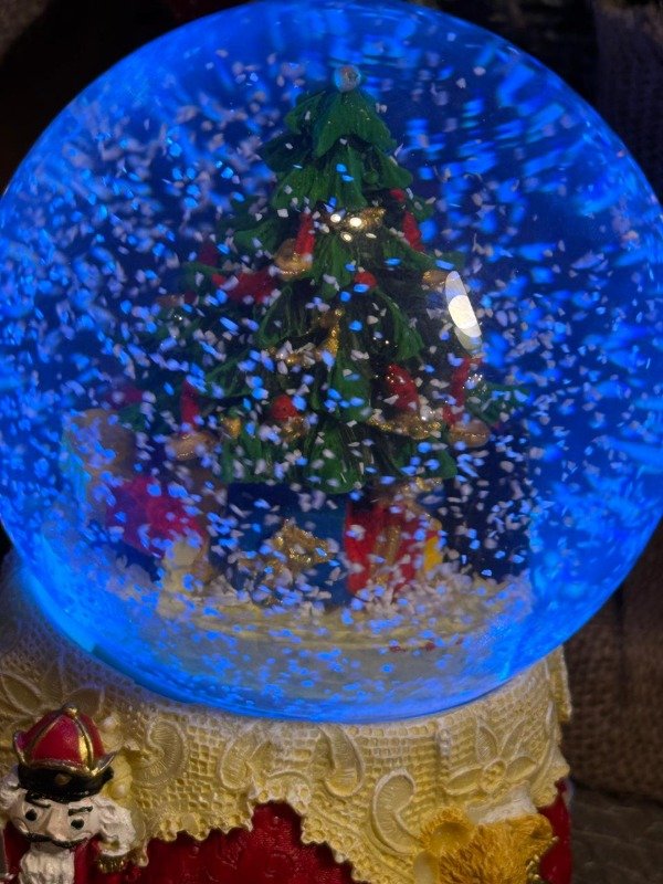 Hace luces multicolores y tiene 8 melodías navideñas diferentes que van cambiando cuando finaliza la anterior.