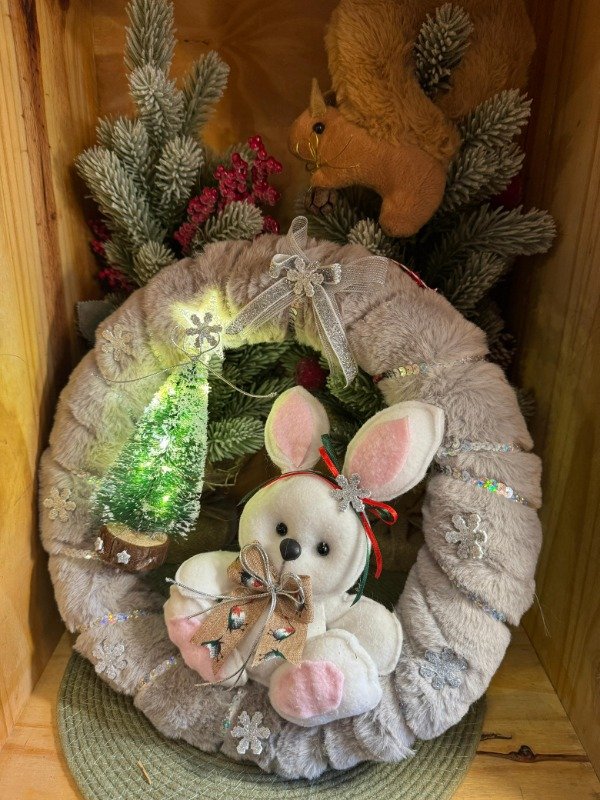 Producto artesanal, varía el diseño pero siempre tiene un conejo y un pino con luz.