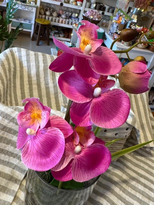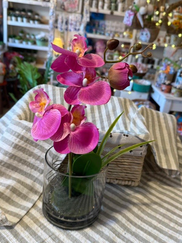 Orquidea fucsia grande con maceta de vidrio