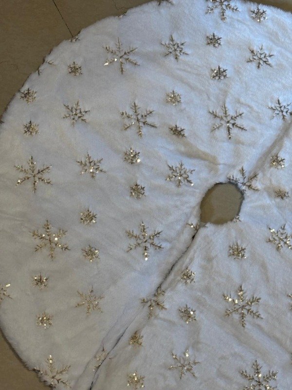 Pie de árbol SNOW - blanco con nieve dorada
