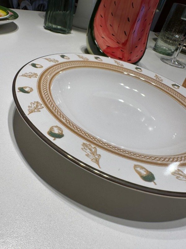 Los productos con virola dorada están pintados con materiales que contienen partículas metálicas o pigmentos que imitan el oro o la plata, por lo que no deben colocarse en microondas ni lavavajillas.
